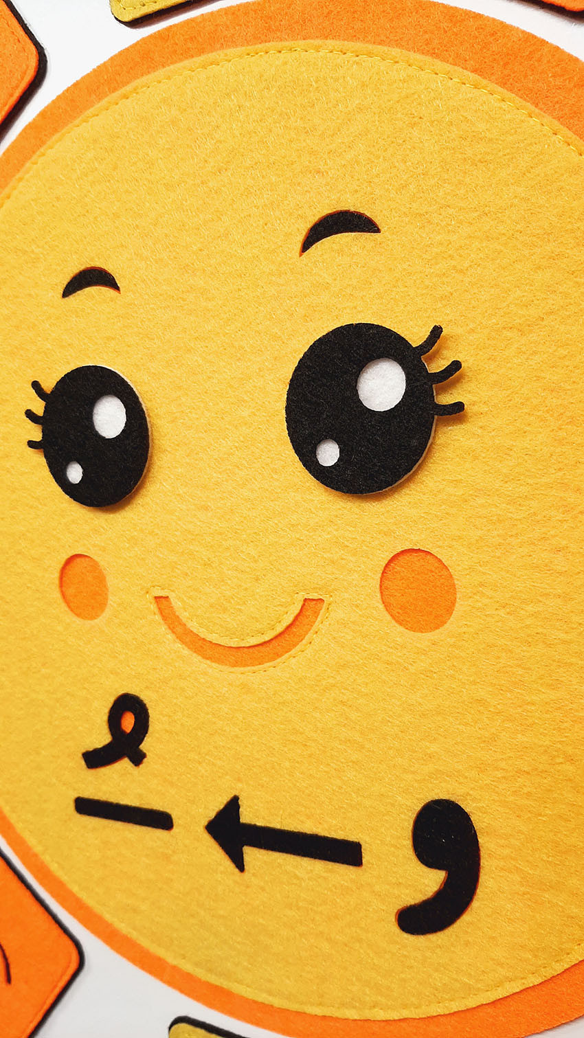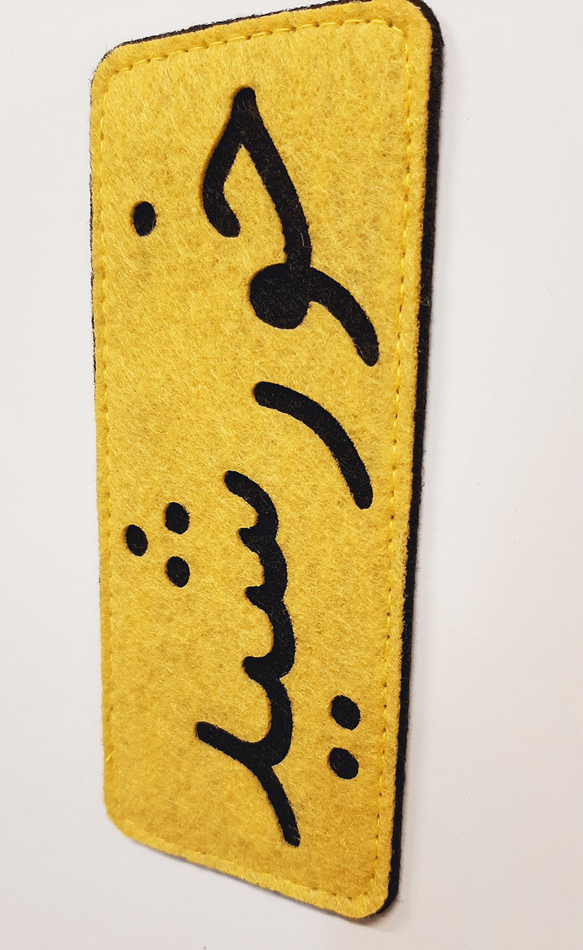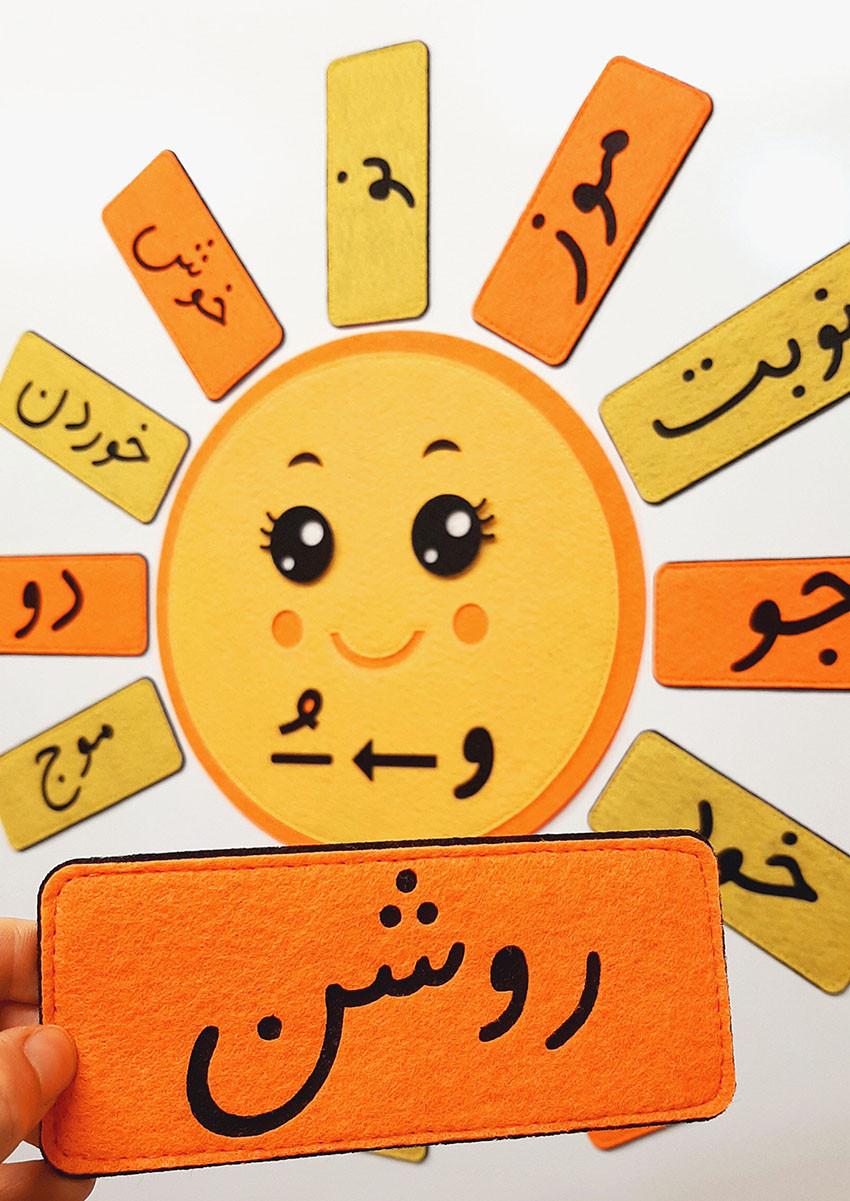 سایز هر کارت کلمه در اطراف خورشید 6 در 14.5 سانتیمتر که در دو رنگ زرد و نارنجی زده شده ( 6 عدد زرد و 6 عدد نارنجی)