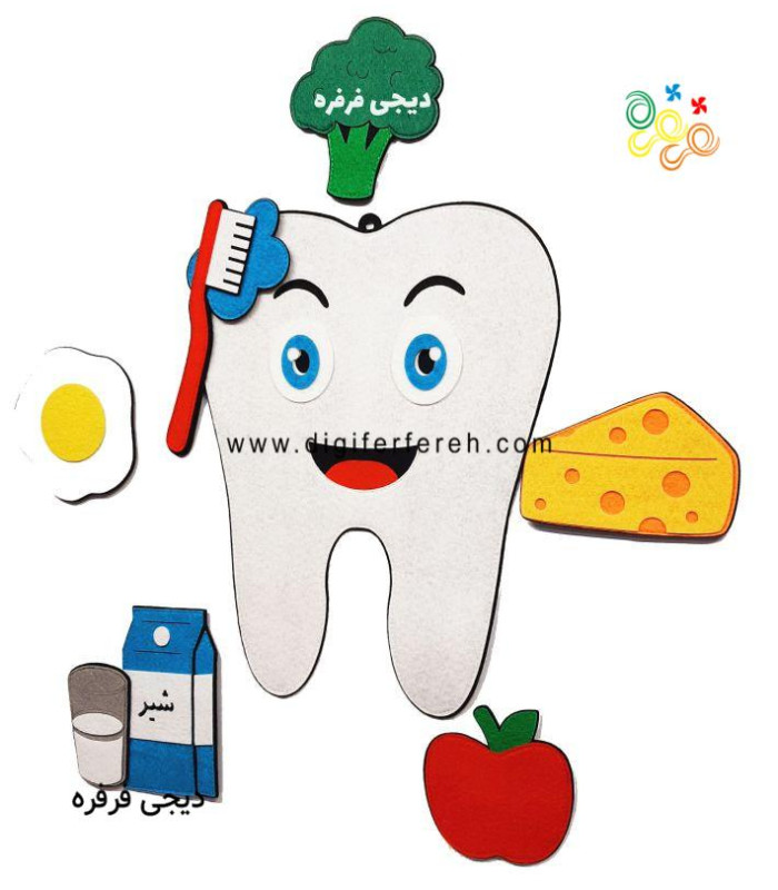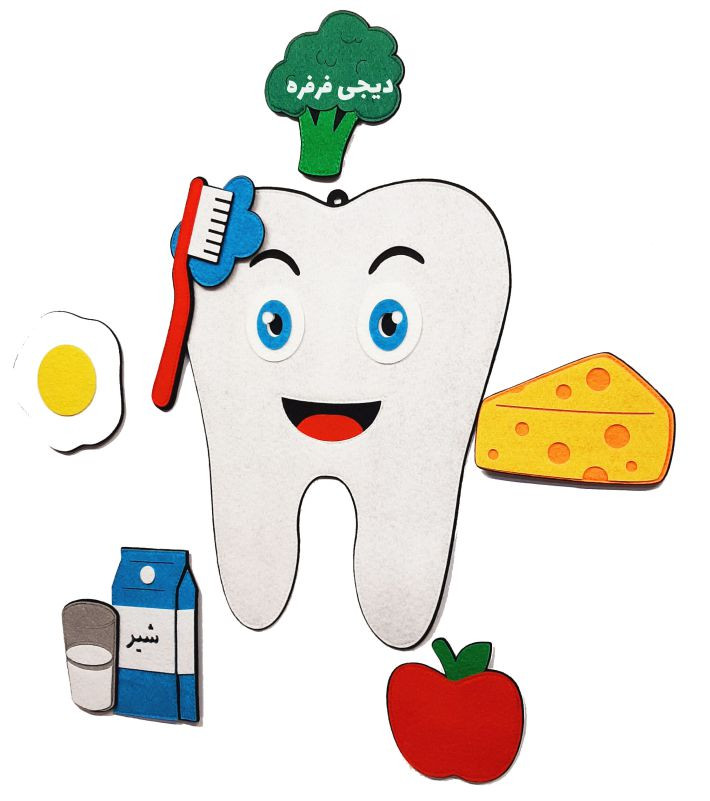 یک عدد دندان سالم با ابعاد 37 در 28 و یک عدد مسواک مگنتی که روی دندان قرار میگیره