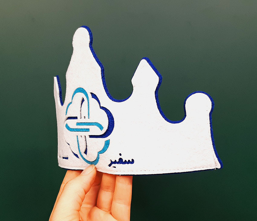 پشت تاج کش میخوره که روی سر بچه ها در هر پایه ای قابل استفاده است. کش به تاج دوخته شده .