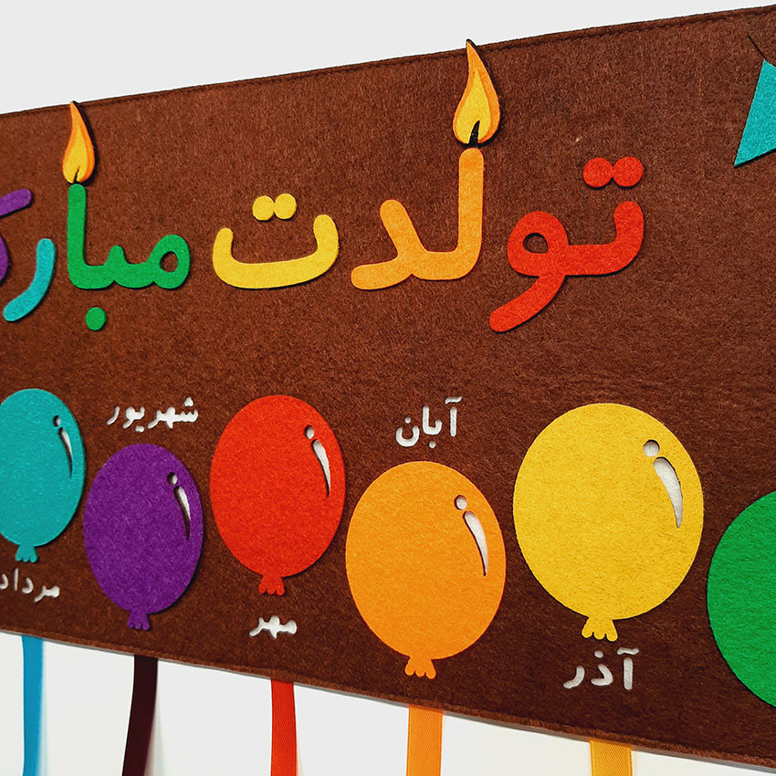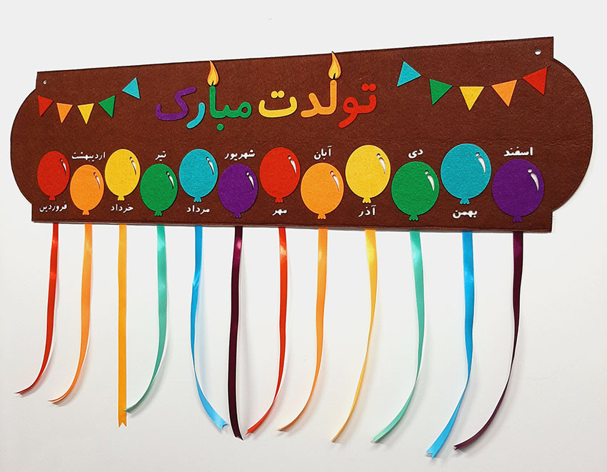 12 ماه سال برای این برد در نظر گرفته شده . به روبان های هر بادکنک میتونید با گیره نام بچه ها یا عکس هاشون رو نصب کنید .
