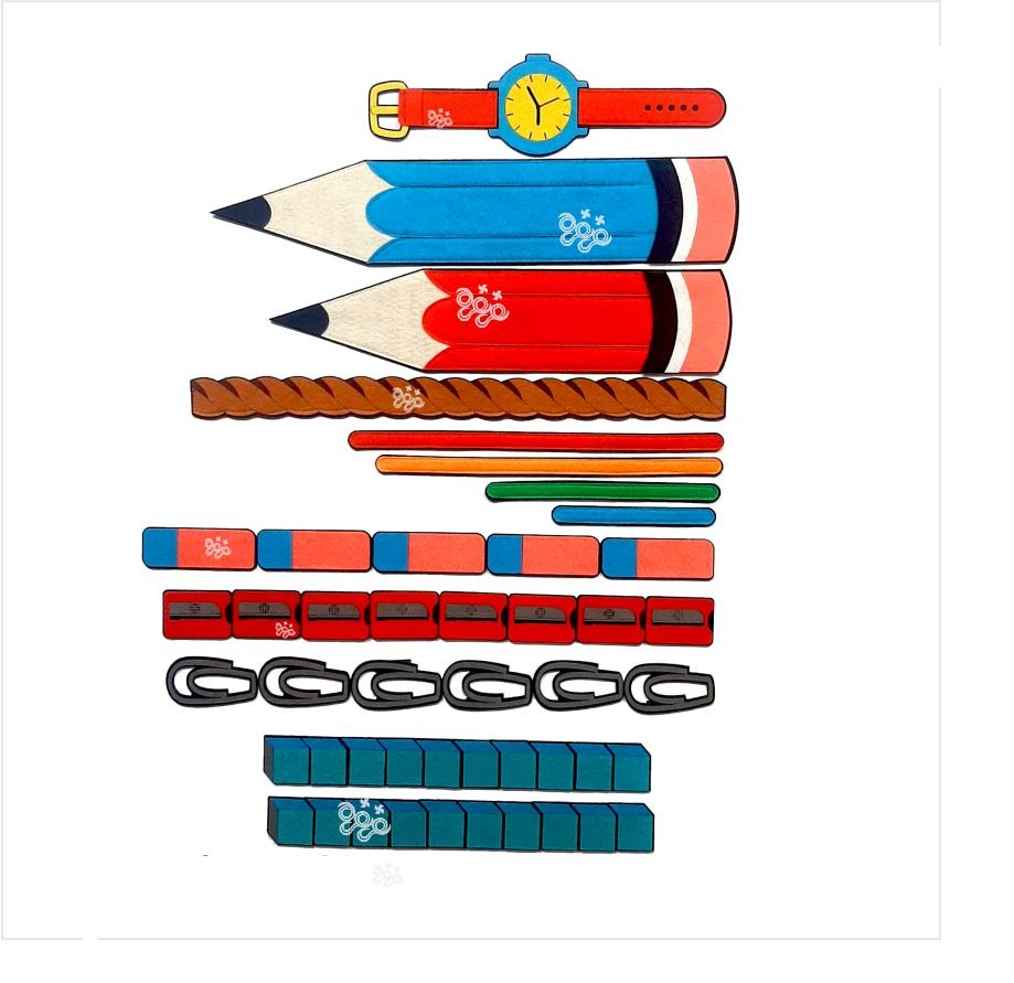 پک واحد اندازه گیری مگنتی مقطع دوم دبستان شامل چینه ، مداد، تراش ، گیره ، پاکن ، طناب، ساعت مچی ؛ خط کش، کاغذ، خط کش که مگنتی هستن می باشد.
