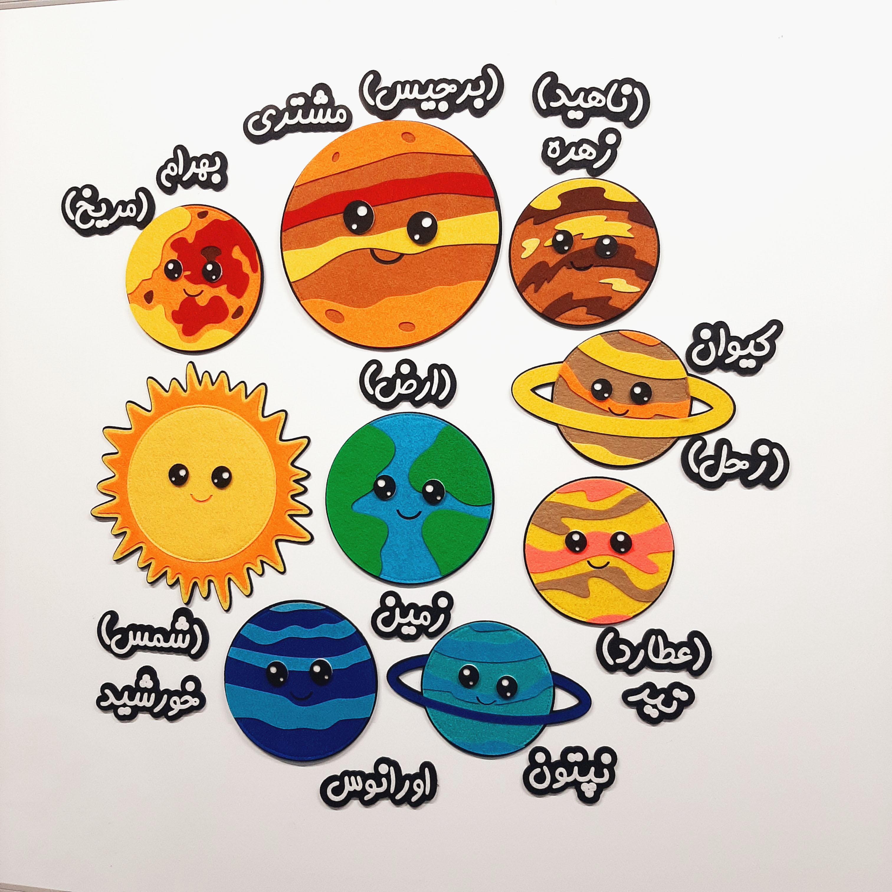 تمامی سیارات و اسامی مگنتی هستن و روی تخته قابل نصب هستن.