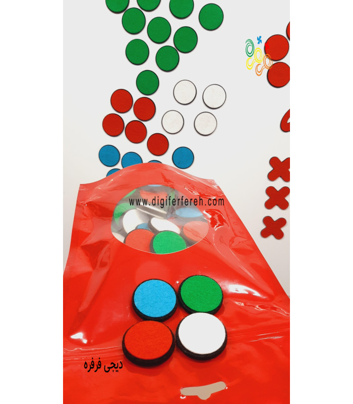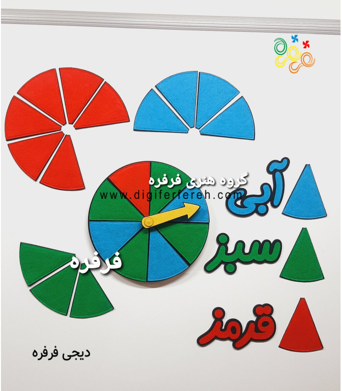 34- صفحه ی چرخنده پک کامل شامل : دایره های 8 قسمتی و 4 قسمتی در 3 رنگ ، کلمات سبز.قرمز.آبی برای ساخت جدول احتمال ( قطعات 1.8 در هر رنگ 8 عدد و قطعات 1.4 در هر نگ 2 عدد )