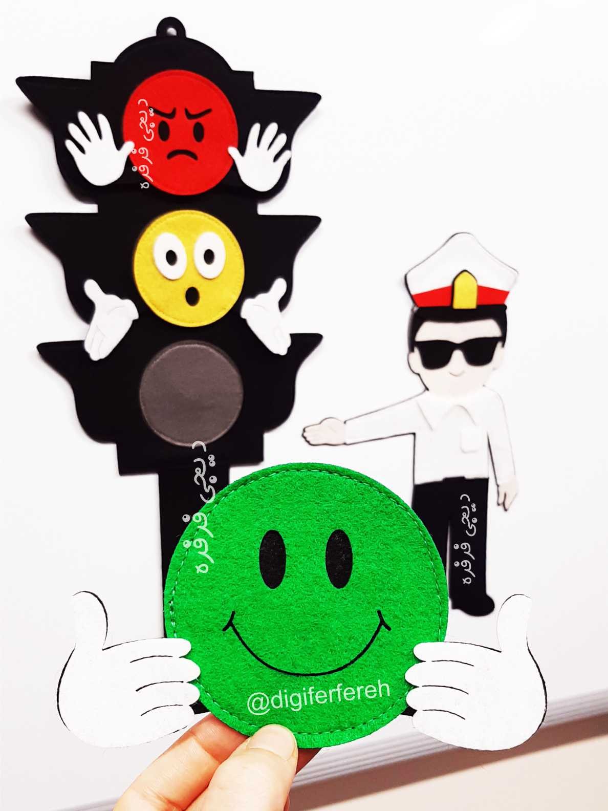 چراغ های سبز.زرد و قرمز مگنتی هستن و می تونید رنگ های چراغ رو با خوندن شعر و یا داستان برای بچه ها تعریف کنید و از نقش پلیس در کنار چراغ راهنمایی براشون صحبت کنید .