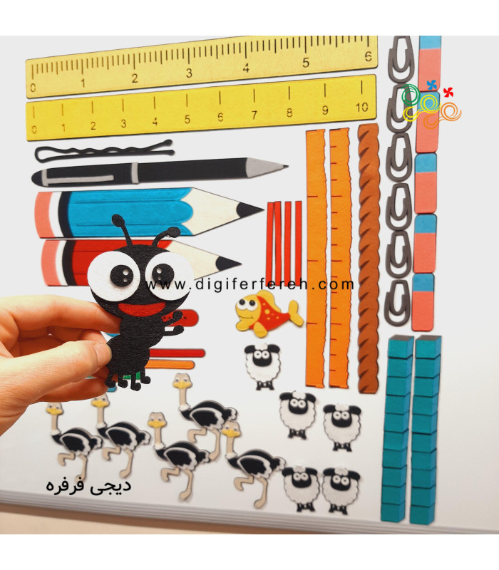 این پک جامع بر اساس صفحات کتاب ریاضی دوم و فصل پنجم انجام شده . تمامی ابزار نمدی و مگنتی هستن و روی تخته ی مغناطیسی و یا برای تدریس کلاس خصوصی مناسب هستند.