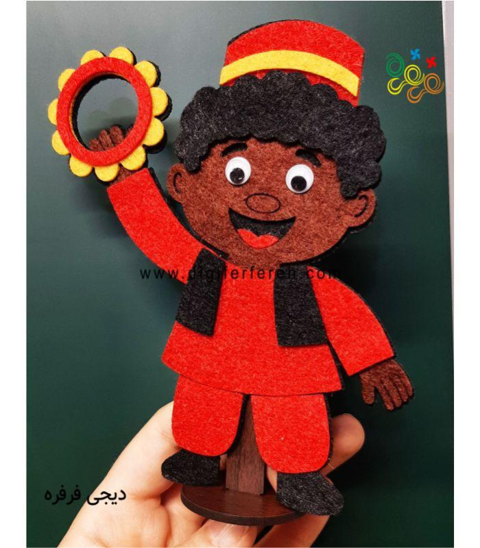 جنس این محصول نمدی هست و روی پایه ی چوبی نصب شده است.