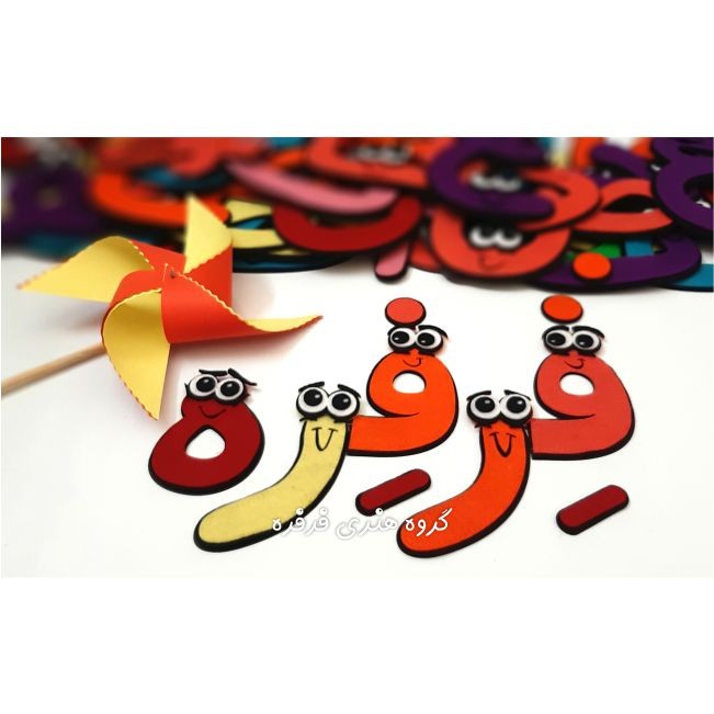 الفبا شامل دوخت صنعتی داری 80 عدد حروف آخر و و غیر آخر و شامل ترکیب 7 رنگ نمد