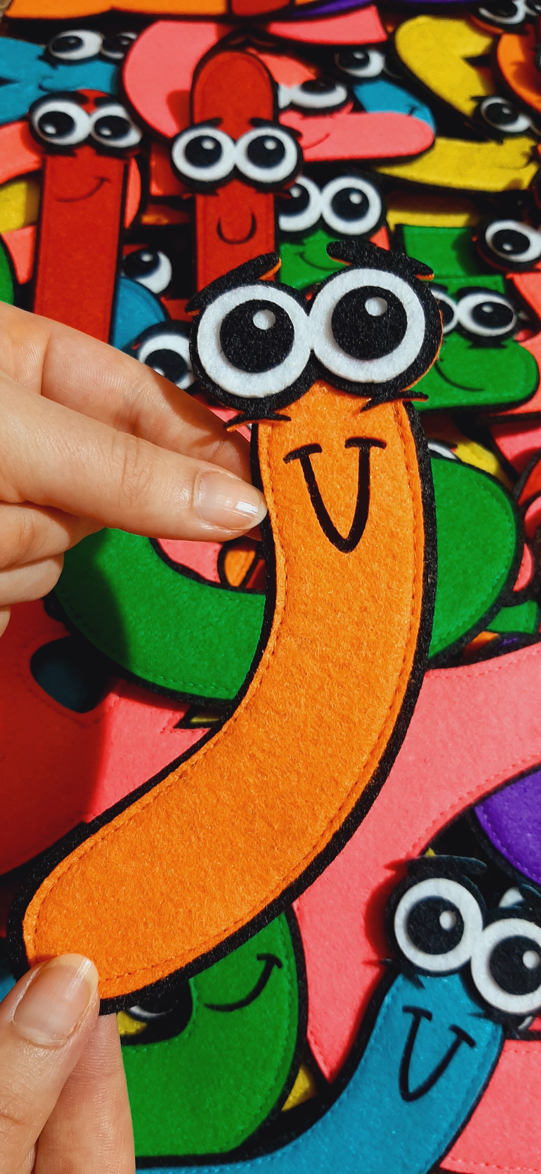 در هر پک 7 رنگ نمد استفاده شده که این تنوع رنگ بندی در این محصول به گونه ای است که رنگهای شاد و جذاب در کنار همدیگه قرار بگیرین که برای دانش آموزان که به تازگی با این حروف آشنا میشوند قطعا جذاب و موثر خواهد بود. صداها در این پک الفبای فارسی به رنگ قرمز مشخص شدن و حروف استثنا به رنگ سبز.