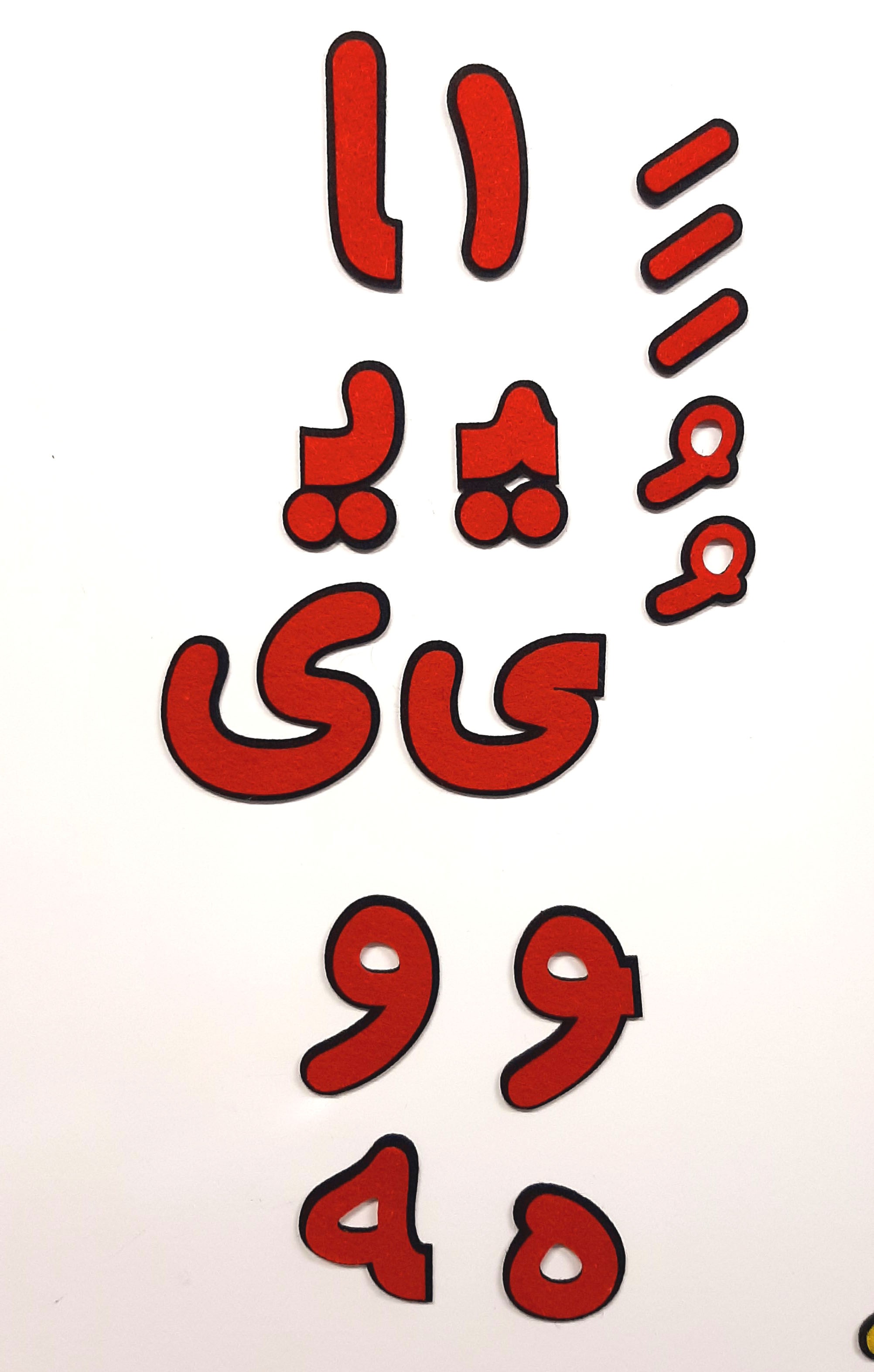 حروف و صداها در دو رنگ زرد و قرمز طراحی شده تا برای بچه ها جذابیت بیشتری داشته باشه و در ذهنشون ماندگارتر باشه.