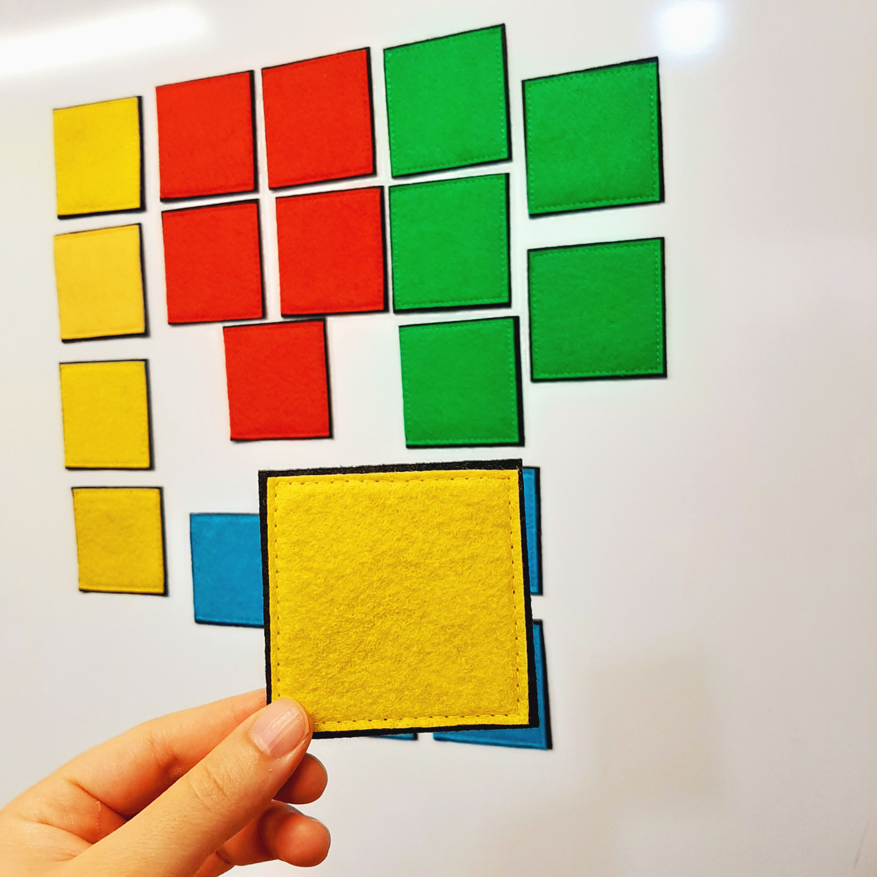 این پک شامل 20 عدد مربع 7 سانتی در 4 رنگ قرمز،زرد،سبز و آبی می باشد